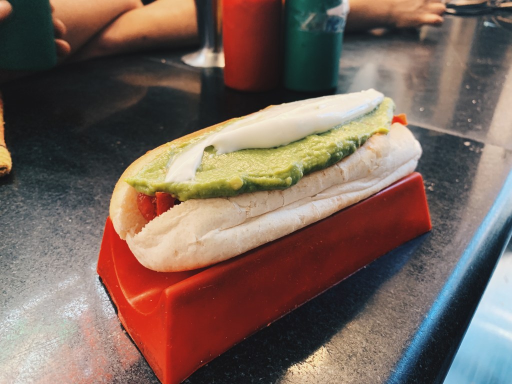 On a lighter note, and in between museum hopping, we were getting hungry and decided to knock out two Chilean classics: empanadas and completos. Most people know what empanadas are, but they are a bit bigger in Chile (which is great). However, what we were really looking forward to were the completos, which are hot dogs with various different toppings. The completo italiano, which is a hot dog with mayo, tomatoes, and avocado (white, red, green—Italian flag colors), is the most famous, so we went for it. Immediate reaction was that the cold toppings on top of the warm hotdog didn’t mesh with me. I enjoyed the flavor, and I’m sure I’ll test out others, but I give it a 5 out of 10. The empanada on the other hand was a solid 8 out of 10.