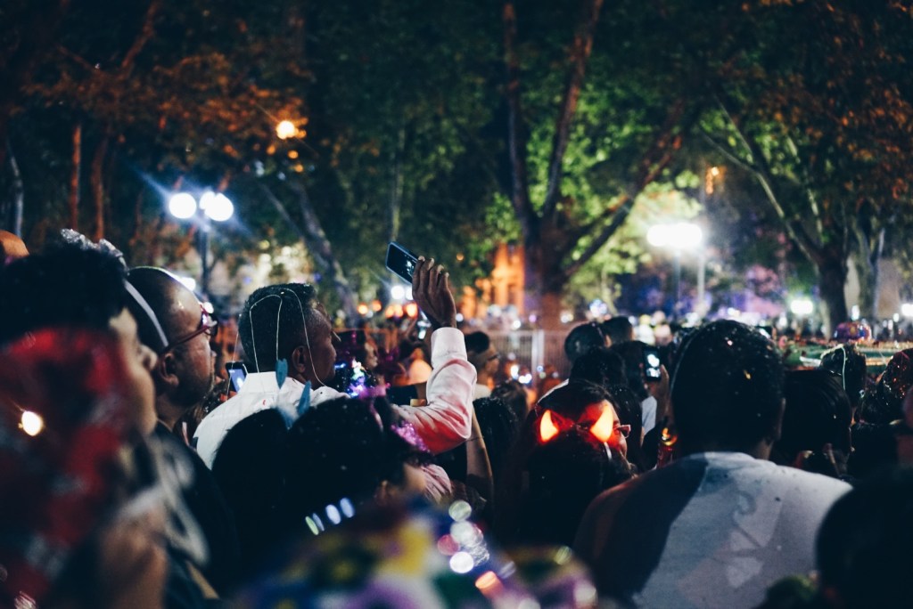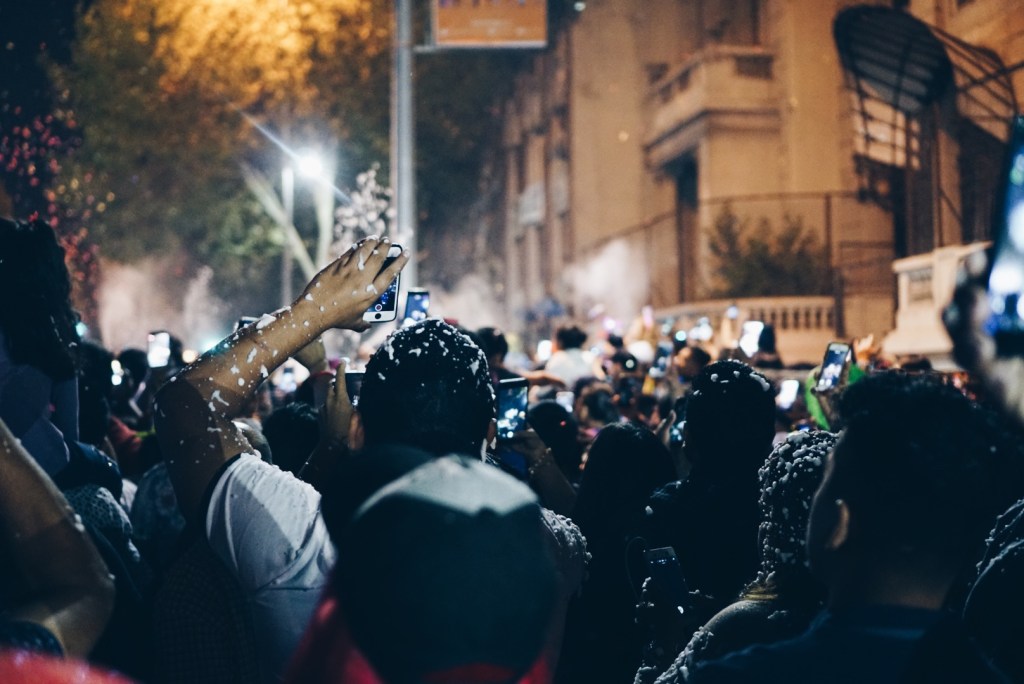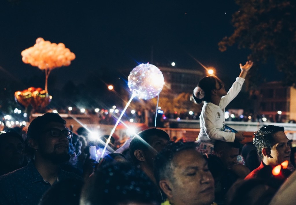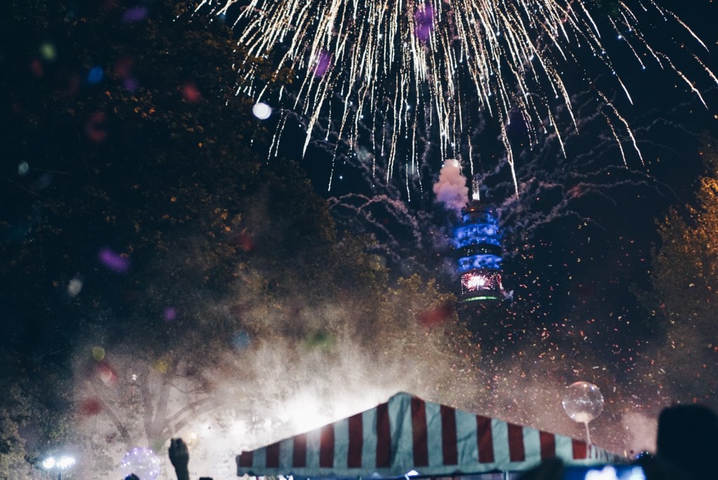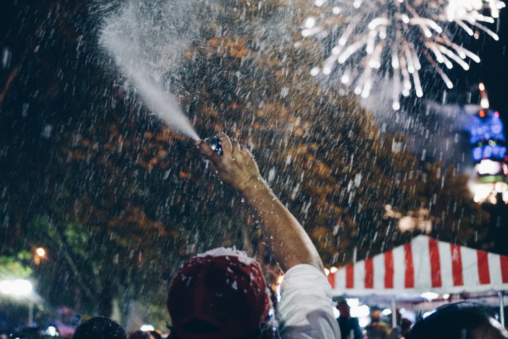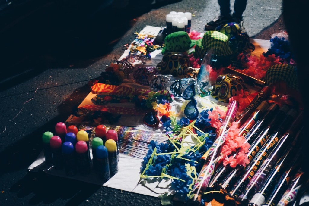 The streets around La Moneda were buzzing. There was so much to look at! Families were all around with confetti poppers, silly string, foam “snow”, and fun glasses and hats. Street vendors were selling meats, sweets, and popcorn. Nick and I snagged some popcorn (since we really didn’t have dinner) and walked around. There was a big stage that seemed to be streaming in some sort of concert? I’m not sure where it was, but it provided some good music to get in the spirit. We brought in the new year being showered with silly string, foam, and confetti.