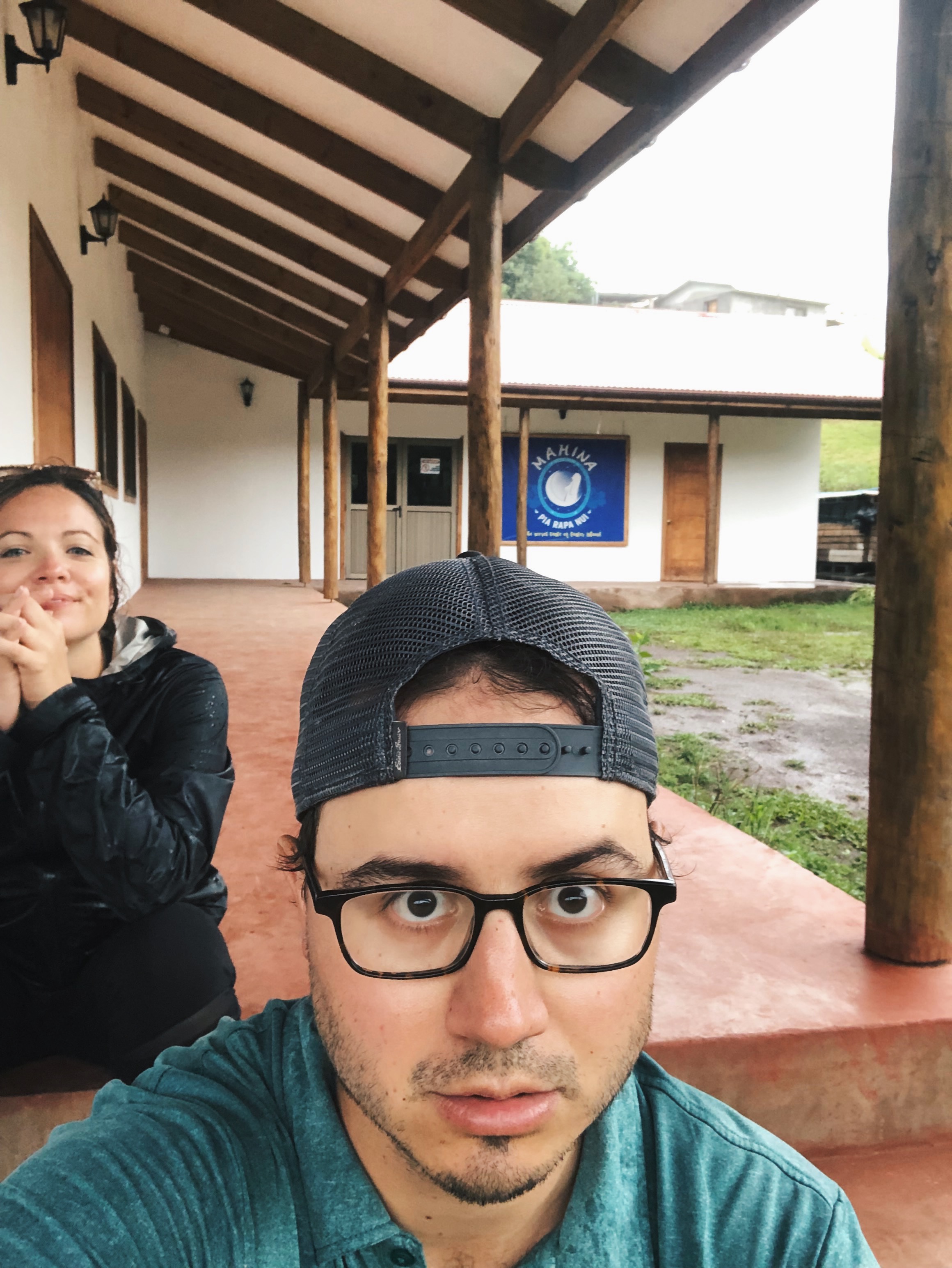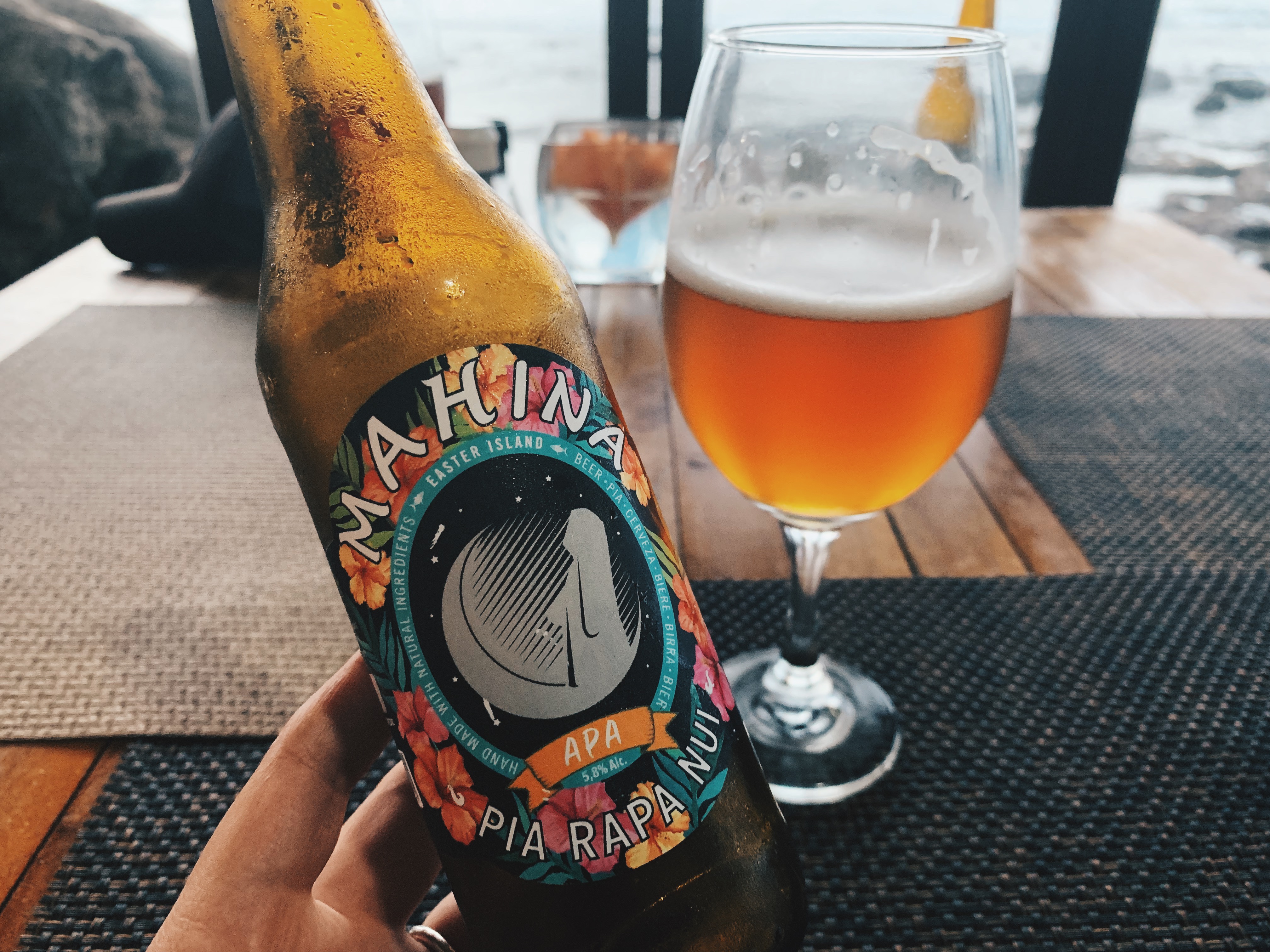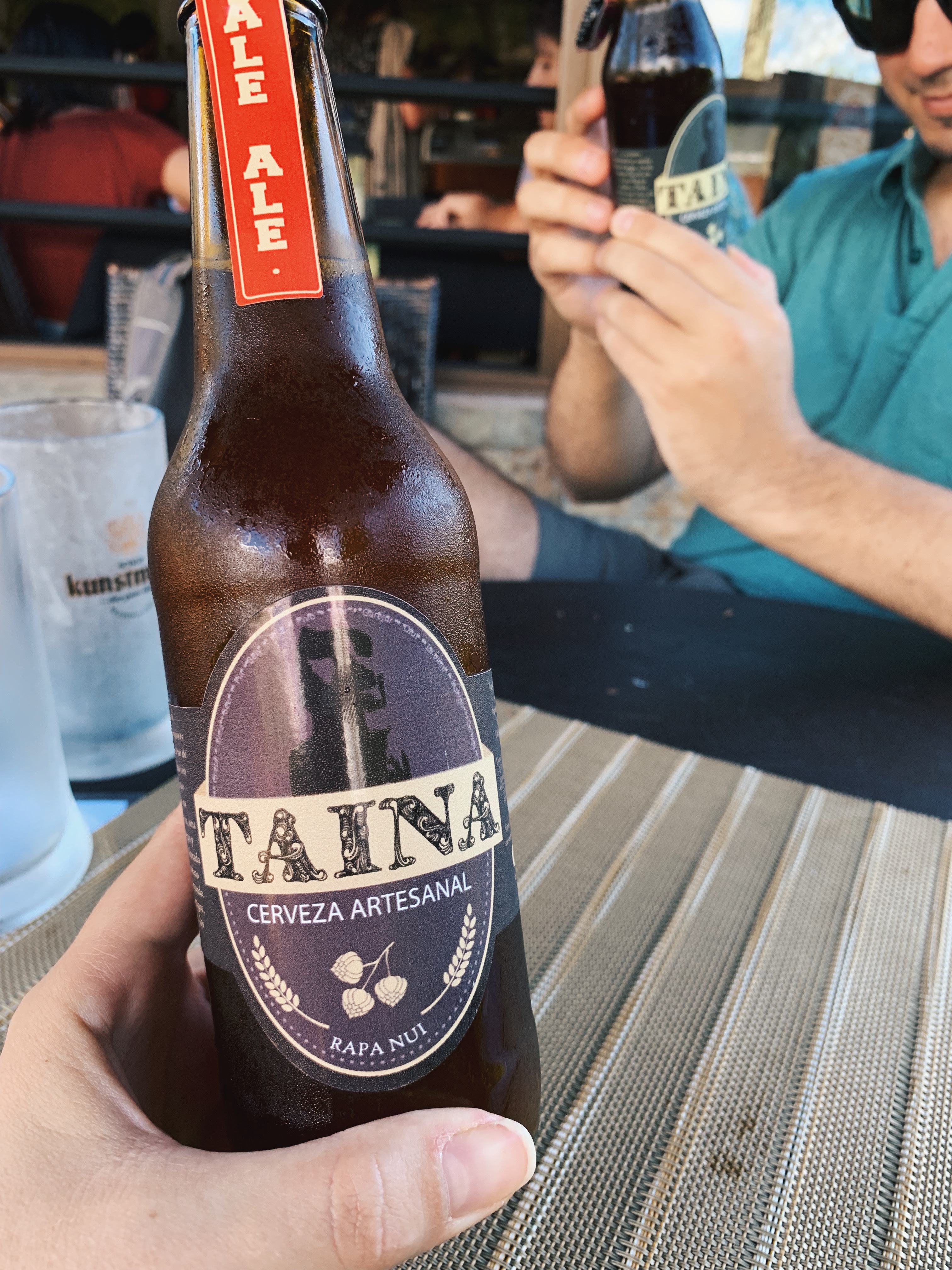 After a long trek up, we were fortunate to find a taxi driver who took us back into town. We were famished and conveniently next to the same lunch spot as yesterday so we stopped in again – as they had a different daily special. Another thing that was great about this spot (and several others) was the jugo naturales drinks that they served. This place specialized in the guava one, but we had other varieties on the island throughout the weekend, including an incredible pineapple one (Rapa Nui is supposed to have the best pineapple on the planet, the juice made it hard to argue against this claim). During lunch, the rain picked up – so it was perfect timing for us to relax, split a meal and listen to the rain hit the tin roof. After the rain subsided an hour or so later, we hopped around a couple shops so Sarah could find a t-shirt, and then we went on a mini-adventure to find the Mahina Brewery to find some merchandise and enjoy some beers. Once again, we had not GPS and it wasn’t on any maps so we tried talking with locals to get directions. After a few wrong turns, and unfortunately, the rain picked up again, we found the brewery! However, it was closed. Very disappointing. It’s not open on the weekends I guess. Oh well.