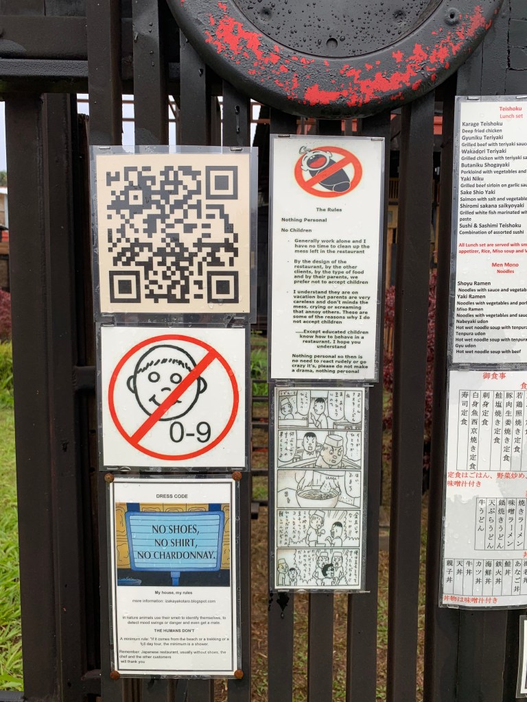 We strolled around town a little longer but then went back to our Airbnb to clean up prior to dinner reservations that Sarah and I had booked at Kotaro. This restaurant is the only Japanese restaurant on the island, has rave reviews, and the owner is incredibly…quirky. Check out his website – he has some fun rules about the dining experience. We got there and I’d describe the restaurant as a very modern home, and has seating for about 15 people. When we arrived, there were three guests at a table, and Sarah and I were seated at the bar (which was perfect to watch the chef, his wife, and son, prepare the dishes). The rest of the night, there were 7 other guests, so the restaurant only served 12 people that night, and that’s apparently how the chef likes it. We had some great fresh raw fish as an appetizer and then the chef basically told us we have options for what we wanted to eat: beef, fish, pork, chicken, or shrimp. After we picked the protein, he gave us some options for sauces. We went with the fish with curry sauce and the beef with teriyaki. Both were fantastic. After we finished those, we just relaxed and continued to watch him prepare items for others. One of the rules of the place was to not try to plan anything else and to not be in a rush. So we just relaxed. It worked out great because then he gave us some additional raw tuna to try, and then kept brining us different sauces to taste – while they had common names like garlic, curry, miso, etc. they all had a very unique flavor that was quite memorable. Personally, I regret not getting the miso – I’m not even really a miso soup fan, but this was a fantastic flavor. Anyways, we were the last two people there and just found ourselves talking with the chef for about 45 minutes, it was a nice experience.