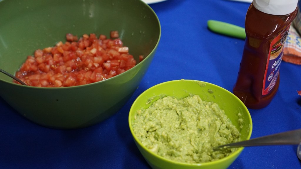 A few weeks back, it was COMPLETO DAY, which as we’ve discussed before, are Chilean hot dogs. They are basically hot dogs, but with some different toppings – mainly avocado and mayo. We all brought different ingredients and I decided to make (what is now referred to as) “Salsa Susana” – since she loved it so much when we made it with our American burger lunch.