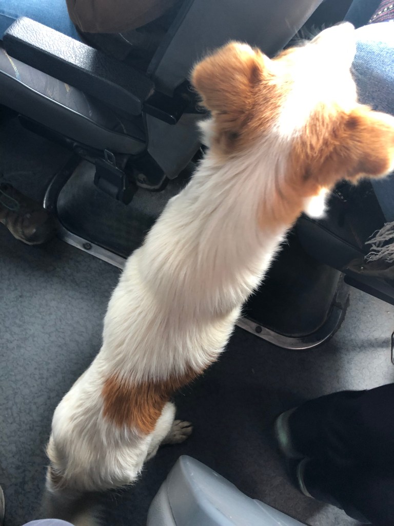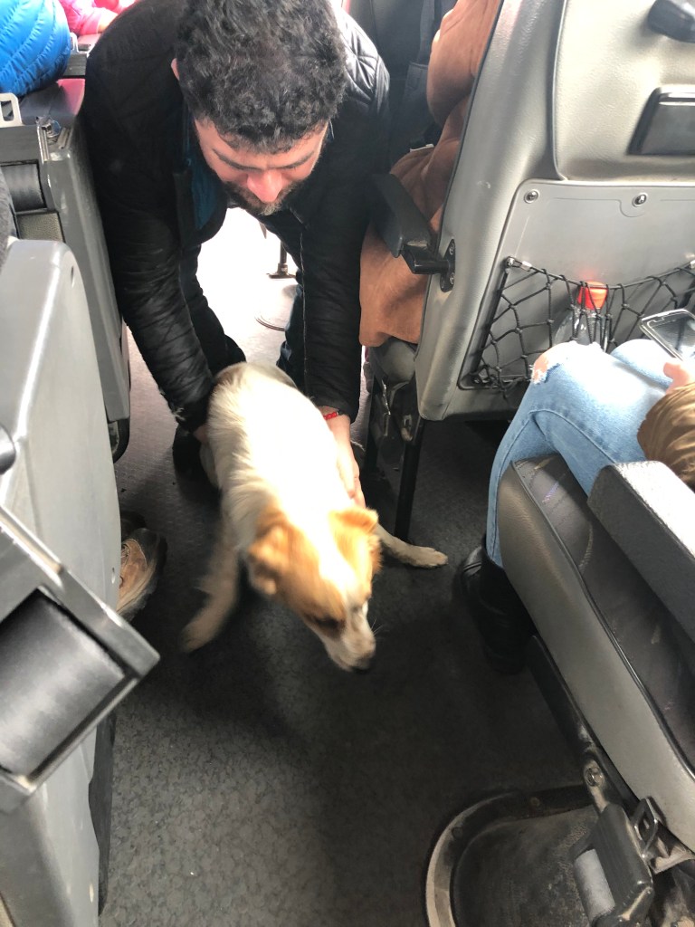 Side note: on our way there, we made a pit-stop at a small beach to stretch our legs and look out over the water. There was a pupper out there that was excited to see a bus full of tourists. So excited that he hopped onto the bus and didn’t want to leave. The driver kept picking the dog up and setting him outside, only to then dart back onto the bus. He, like all dogs, was very good.