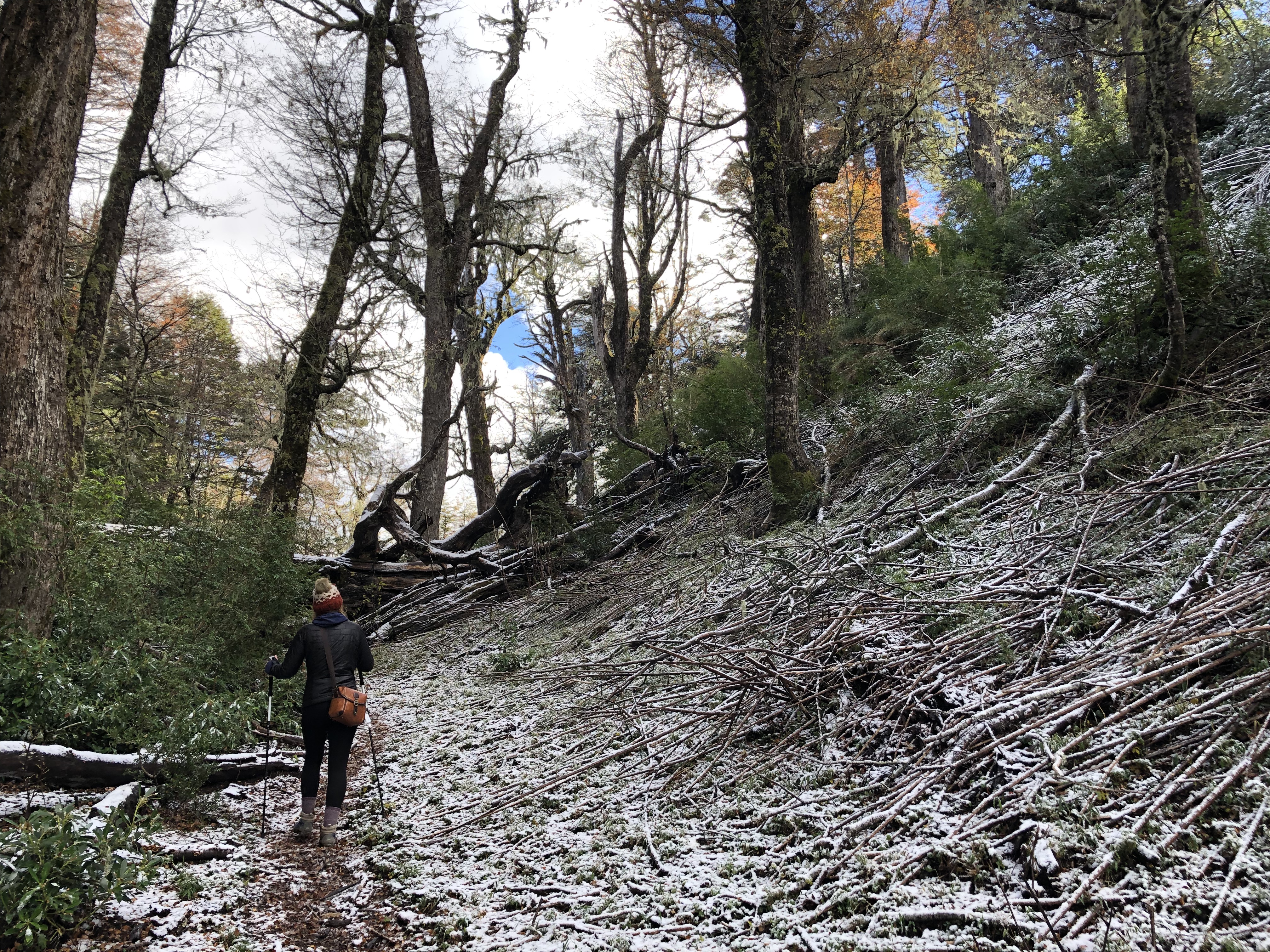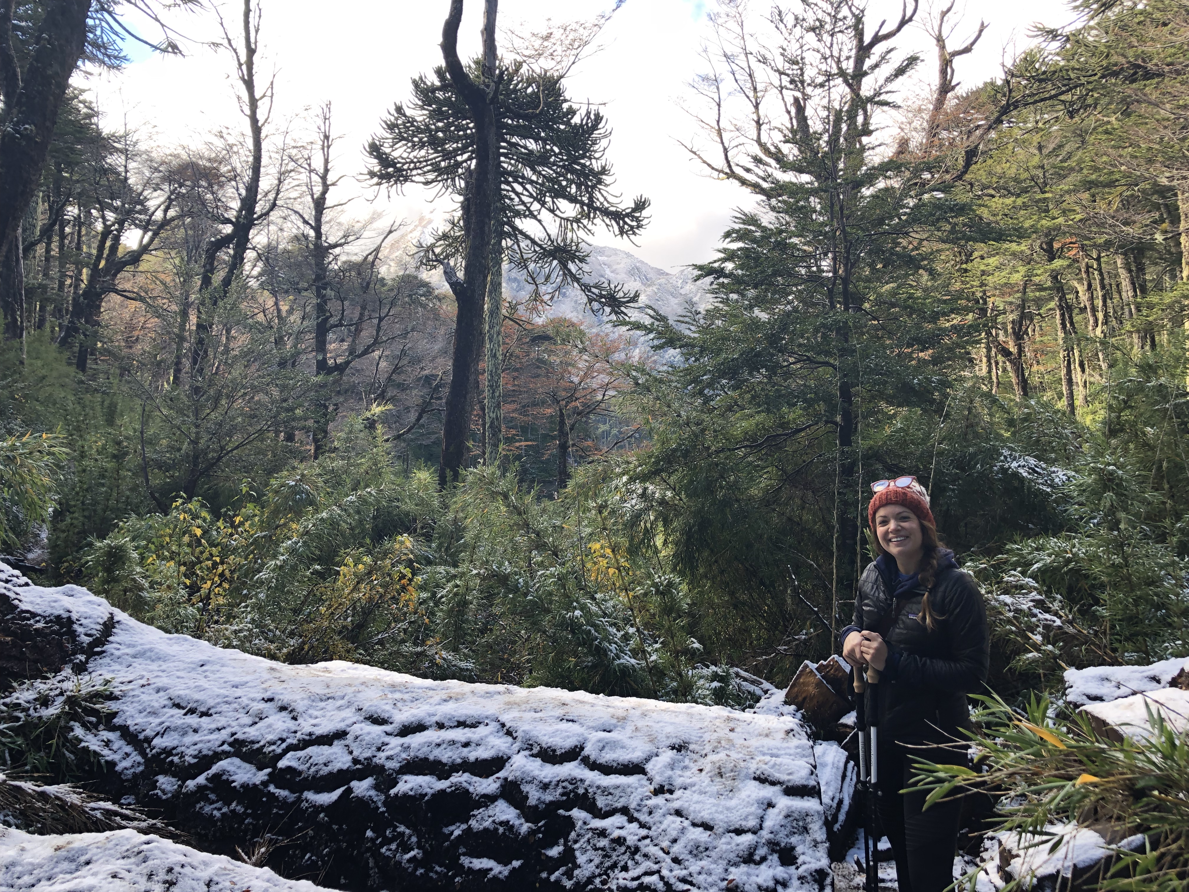 Even though we’ve been to Pucon twice, we’ve yet to explore the parks around it for some hiking. There are many options, but we opted for the Los Lagos Trail within Huerquehue National Park, as reviews told us this was the most popular and had many scenic spots around the lakes that you hike to. There were a couple other options, but they relied on a clear day in which you see the vast landscape from the top of the mountains. Given it was cloudy, we took the safer route. The trail was well marked and easy to navigate. Unfortunately, since it’s rainy season, the trail was quite muddy, so we did have to spend more time looking down to ensure proper footing then we would have liked. Also, the trail was a bit more crowded than I wanted, but that happens – we did pick the “popular” trail after all. Once we got near the lakes, the weather got cooler (we were higher in elevation), and there was actually snow on the ground. At times, the sun would peek through the clouds and make the snow on the trees melt so it felt like it was raining. It was a pretty cool environment to be in. Once at the top, we took some shorter trails to a couple different lakes. The views were great as there were full grown trees right at the base of the lake and the hills and then there were snow-covered mountains in the background. Very scenic. We found a decent spot for a quick lunch and then made our way back down. The hike lasted a little over 5 hours, but was a good workout with some rewarding views.