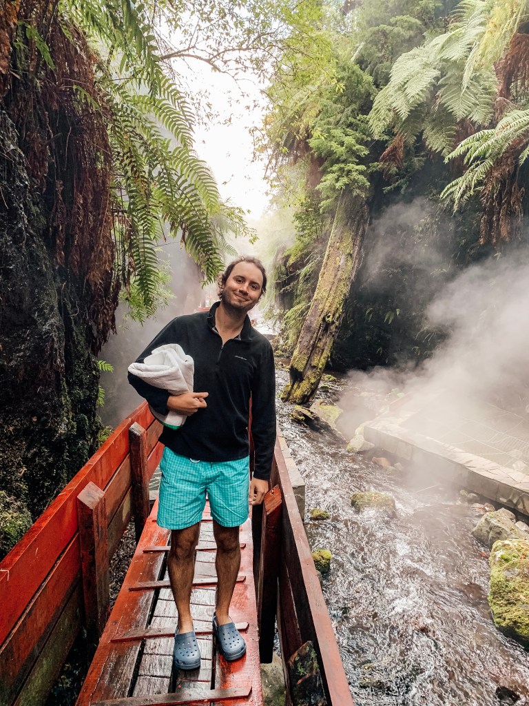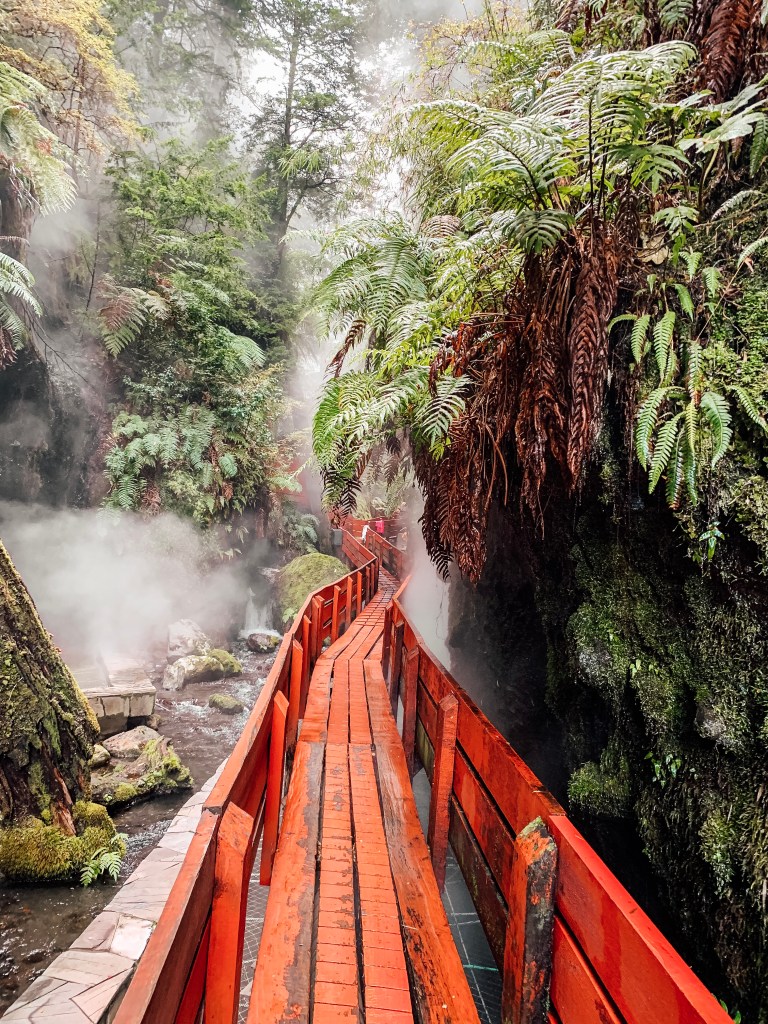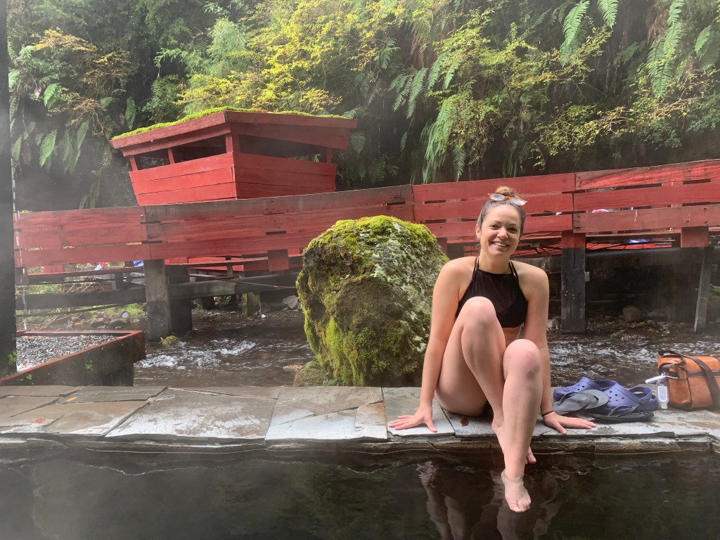 Hot springs are really popular in Pucon. We’ve been to a couple, but there was one that Sarah really wanted to go to. It’s called Termas Geometricas, and it’s about 400 meters of hot springs down a long winding Japanese-inspired path. We went during the day so we could see everything around it. It was really awesome. The place was fairly crowded, but we found a spot in a pool with a couple other adults that kept to themselves. We packed some food/drink and just relaxed in the waters. We jumped around from pool to pool, and walked the entire 400 meters to see all the pools and waterfalls. The termas were about 2 hours outside of Pucon, so it was a bit of a hike to get there (we went with a tour that provided transportation – we wanted to give Lemmy a break), and while it was far to get to, it was worth it.